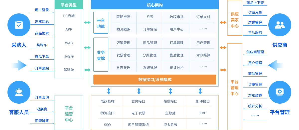 面向内部部门和员工,覆盖企业及集团物资集中采购、员工福利等场景,满足企业不同采购需求,助力企业实现采购流程规范化、管理精细化。